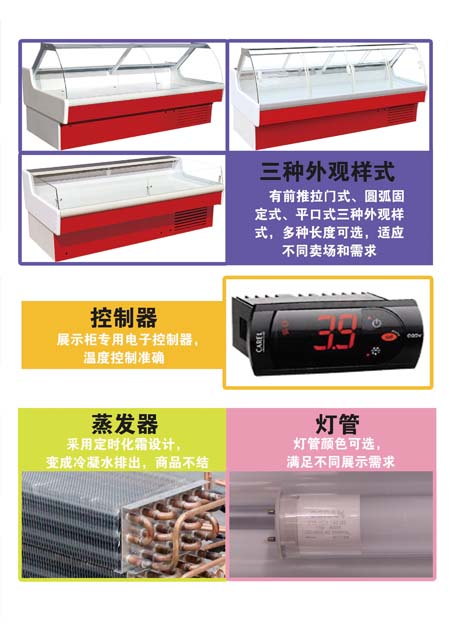★采用展示柜專用電子控制器,溫度控制準(zhǔn)確,保證商品展示溫度。